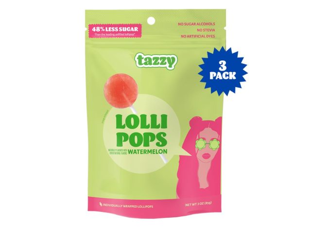 Tazzy candies are any parent’s dream when it comes to Halloween candy. Their Watermelon Lollipops have only five grams of sugar, have two grams of fiber, and are completely void of sugar alcohols, stevia, and corn syrup. The company also avoids the use of artificial dyes and instead uses vegetable juice for coloring.